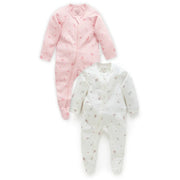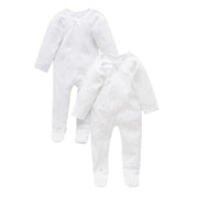 Our Essentials Zip Growsuit 2 Pack is designed with comfort, practicality, and ease in mind for you and your newborn. Crafted from the softest 100% Organic Cotton, these growsuits are gentle on your baby's delicate skin, making them perfect for everyday wear and peaceful sleep.