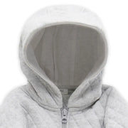 Introducing our Essentials Quilted Growsuit, designed to keep your little one cozy and covered during chilly days. This growsuit features an inbuilt hood and ribbed cuffs to ensure maximum warmth and prevent legs or arms from riding up. The two-way zip at the front makes dressing a breeze.