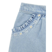 Our Denim Ruffle or Scalloped Shorts are a practical and stylish addition to her summer wardrobe. These adorable shorts feature ruffle details at the pocket openings, accented with sweet floral embroidery, creating a charming and playful look. Made from soft 100% Cotton denim, these shorts are designed with a pull-on style, eliminating the need for fussy buttons or zips. Pair them with our Short Rib Tee for a delightful summery outfit.