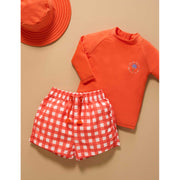 Make a splash this summer with our sun-safe and eco-friendly swimwear sets. Whether you choose the sporty board shorts style or the sweet ruffle bottoms, each set features a long-sleeved rashie for full upper-body coverage and matching bottoms for a coordinated look. Both styles are made from lightweight, breathable recycled fabrics that are gentle on little onesβ skin and kind to the planet.
