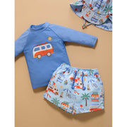 - Rashie with printed board shorts featuring an elasticated waistband