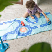 Double the fun with our play towels. This play towel features a unique design and two sides. On the front, there’s a game, and on the back, you’ll find a graphic pattern.