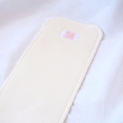 The nappy insert is a trifold crafted from three layers of 100% certified organic bamboo cotton. When folded, it offers nine layers of fabric for optimal absorbency. Rest assured that your baby's delicate skin is in contact with natural fibres free of harmful chemicals.