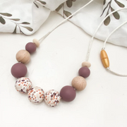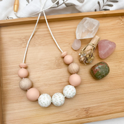 Our ONE.CHEW.THREE necklaces are meticulously crafted, using high-quality, 100% food-grade silicone beads that are free from harmful substances like BPA, lead, cadmium, phthalates, PVC, and latex. These beads are designed to resist odour absorption and the growth of mould, fungus, or bacteria. We also incorporate natural untreated beech wood beads to prevent allergens and sensitivities. You have the option to personalise your wood beads with organic coconut oil or wax, or leave them in their natural state. Additionally, our breakaway safety clasps ensure quick release when pulled sharply.