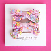 Adorn their hair with flowers with the Floral Sequin Bow Clip. Covered all over with beautiful floral sequins, the combination of colours and beautiful reflective surfaces make this clip an eye-catching hair accessory that is gorgeous to look at and fun to wear.