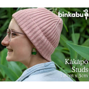 Venture into the rich tapestry of New Zealand with our Kākāpō earrings, paying homage to the critically-endangered parrot found uniquely within its forests. As emblematic guardians of the Kiwi land, these birds, while on the brink of extinction, are a testament to tenacity and resurgence. Our design captures the essence of the Kākāpō using dual-tone green acrylics and intricate hand-etched details, embodying their plump silhouette and endearing visage, yet retaining that signature BINKABU charm. While they make a statement, these studs promise ease and lightness for all-day wear.