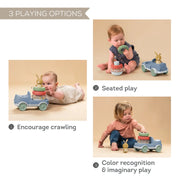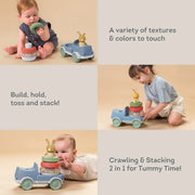 Introducing our vibrant Bunny Stacker Truck, designed to captivate and engage babies while stimulating their senses. This truck offers endless entertainment while aiding in the development of fine motor skills and hand-eye coordination through ring stacking. As an added feature, the stacker rotates with a delightful rattling sound as the truck moves, encouraging little ones to explore and crawl.