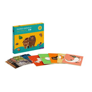 This set includes 5 double-sided cards featuring 10 animals: bear, crocodile, flamingo, giraffe, gorilla, rhinoceros, hippo, ostrich, lion, and zebra. Tear the 8 skin and feather-themed paper sheets into pieces and arrange them on a white card to form a vivid new animal creation.