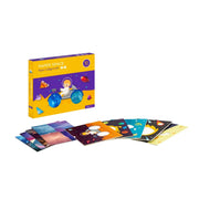 The space set includes 5 double-sided cards with space themes, 8 sheets of patterned paper and a glue stick.
