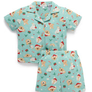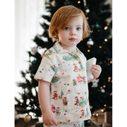 Our Button Up PJ Set makes dreamtime fun! Featuring a two piece top and short set in a sweet festive print. Made from 100% Organic Cotton for a soft and breathable summer sleepwear option. 2 piece set Available in two sweet all over festive prints Elasticated waistband on the bottoms Wood look buttons down the front for easy dressing