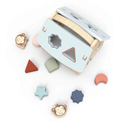 The Shape Sorter Van is a playful wooden vehicle featuring geometric cutouts and matching blocks that help little ones develop shape recognition, hand-eye coordination, and fine motor skills. As they sort and match each piece, they can also enjoy rolling the van around, sparking creativity and problem-solving.