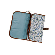 Wipe the material clean with a soft, damp cloth. For stains, use a mild soap and gently clean in a circular motion. Avoid putting the change mat clutch in the washing machine or immersing it in water to preserve its quality