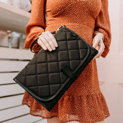 The OiOi Travel Change Mat is the perfect companion for parents who value convenience without compromising on elegance. This stylish clutch unfolds to reveal a luxuriously padded mat, providing a comfortable surface for your baby during nappy changes, no matter where you are. The clever design includes a dedicated elasticised pocket for nappies and a clear zip compartment for wipes and creams, ensuring that all essentials are within easy reach. The exterior features an additional zip pocket for quick access to other items, while the detachable wrist strap offers versatility in carrying. Crafted from water-resistant, easy-to-clean fabric with a faux leather trim, this travel change mat is as durable as it is chic.
