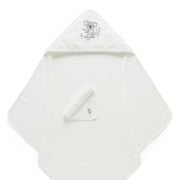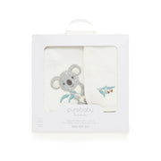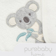 The Pure Baby Eucalyptus Friends Towel Hamper is a delightful addition to our charming Australiana range. It comprises our 100% Organic Cotton Towel adorned with a Koala applique and a Purebaby Face washer with Eucalyptus Embroidery.